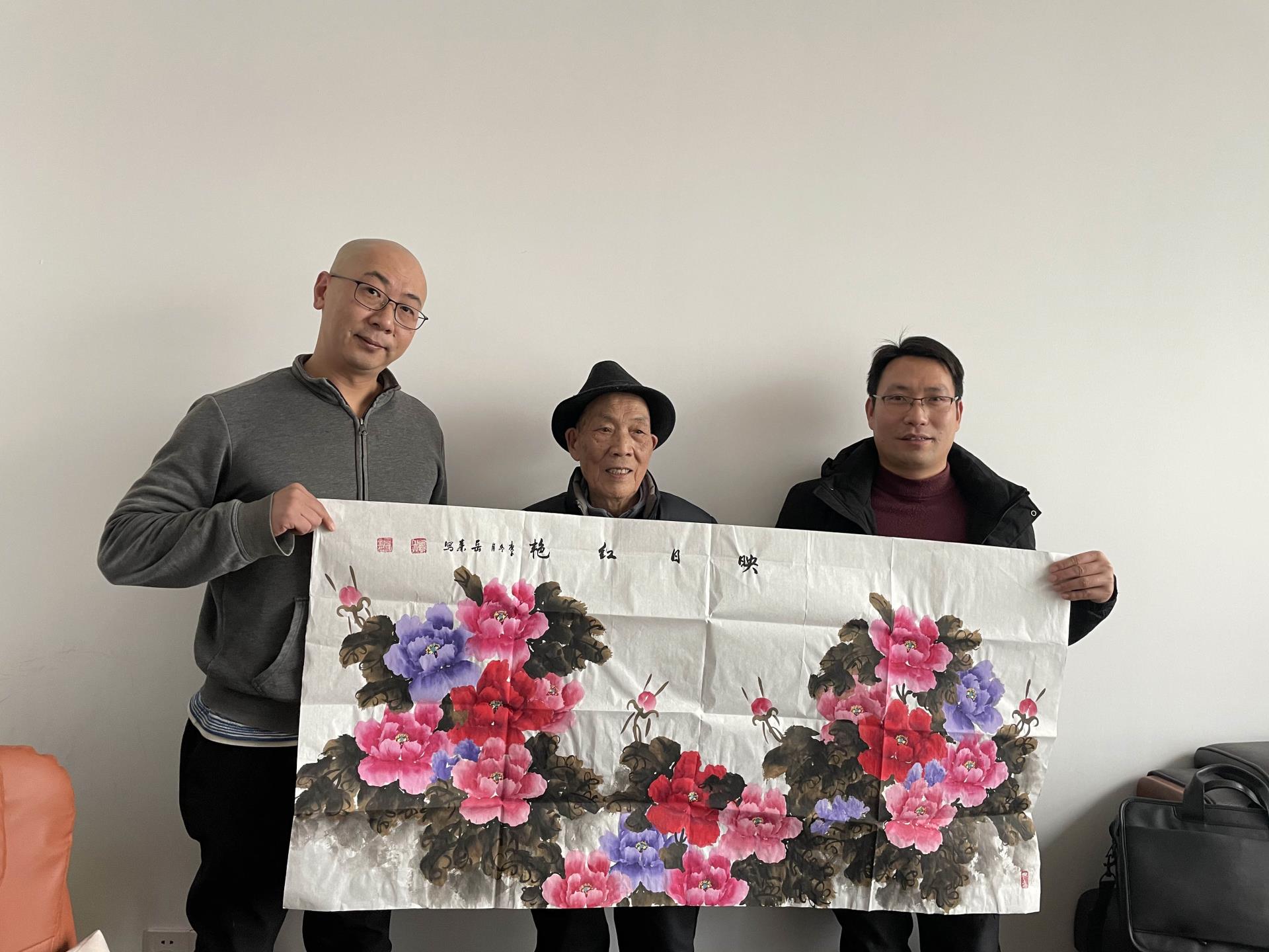 以下是繪畫家劉樹林劉教授和他的作品“映日紅艷”與我司總經(jīng)理劉仁助、副總彭迪的合照。