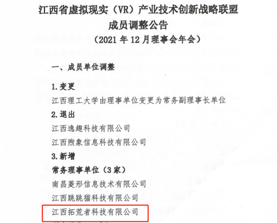我司成為江西省虛擬現實(VR)產業技術創新戰略聯盟常務理事單位